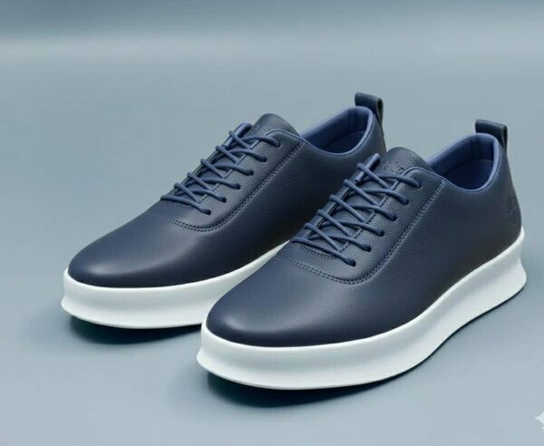 Sneakers homme bleu marine en cuir véritable, semelle blanche, chic et moderne pour toutes les tenues. Pointures dispo : 40 à 45.