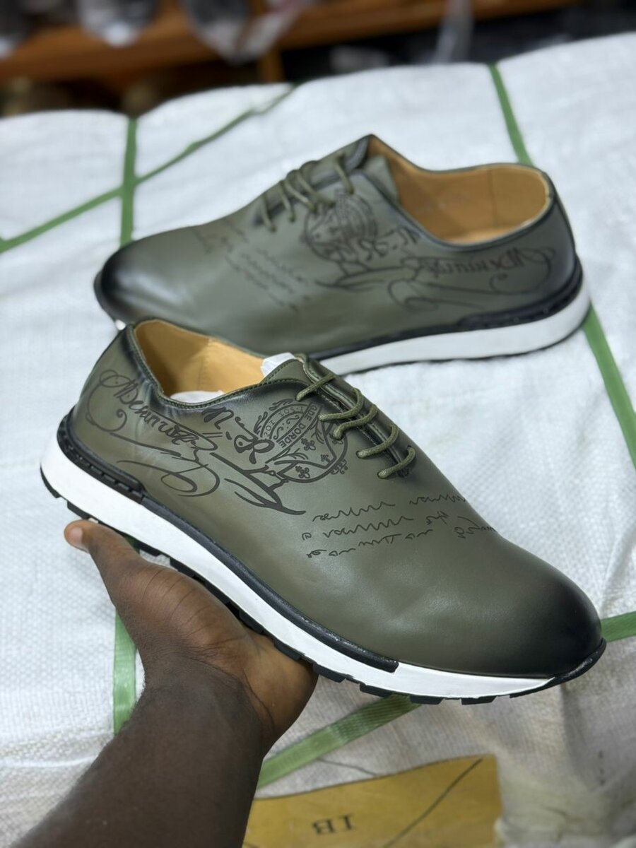 Ces baskets en cuir vert avec des motifs élégants offrent à la fois style et confort. Parfaites pour une sortie décontractée ou un rendez-vous professionnel, elles ajoutent une touche moderne à votre tenue. La semelle robuste assure une bonne adhérence, idéale pour une utilisation quotidienne. Pour ceux qui aiment se démarquer avec élégance!