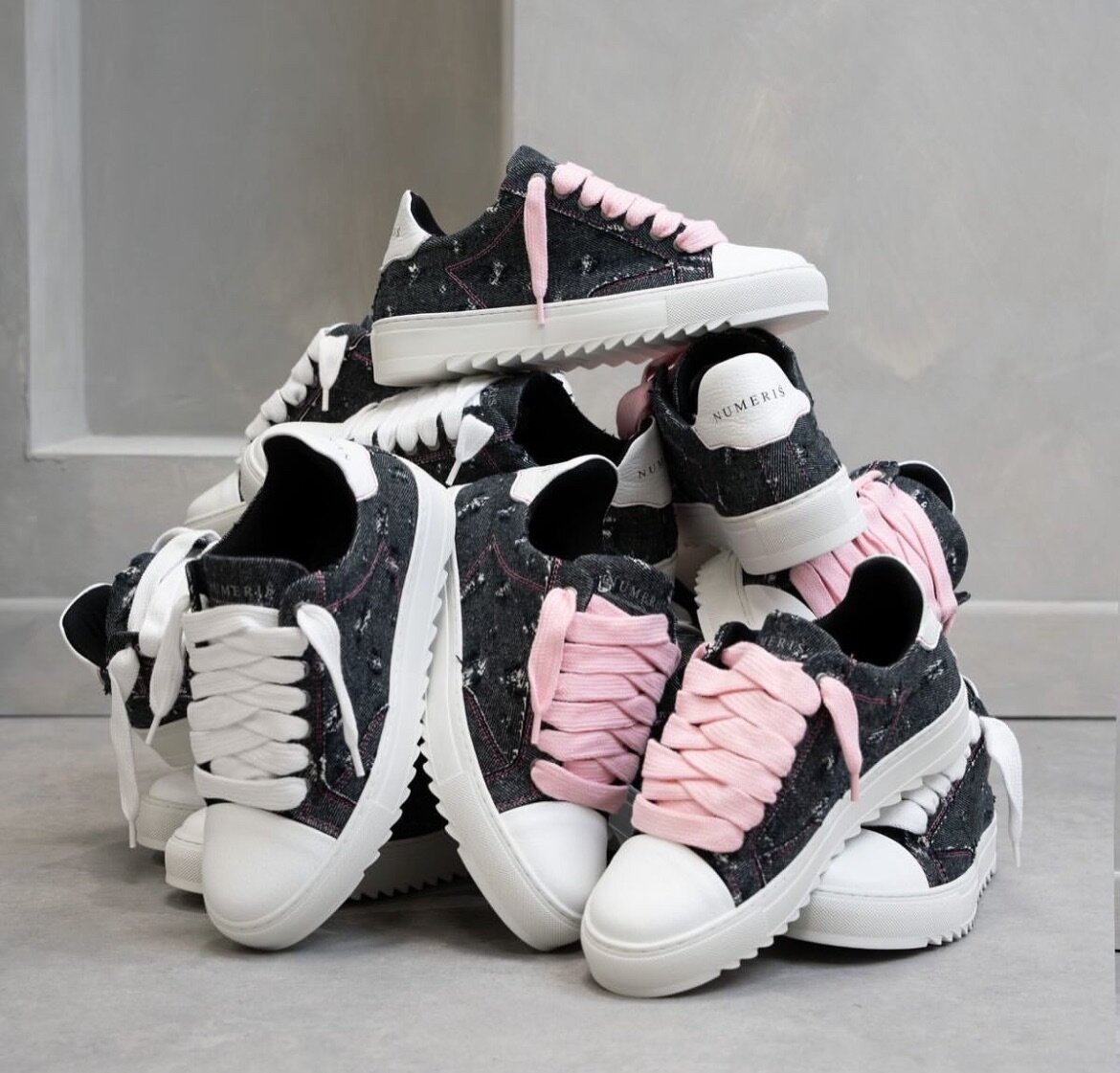 Découvrez ces baskets en denim uniques avec lacets colorés. Parfaites pour un look urbain élégant et confortable. Idéales pour toutes les occasions décontractées.
