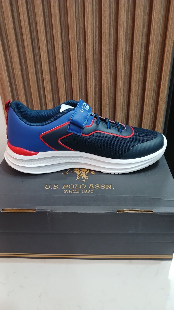 Baskets légères et confortables pour enfant de U.S. Polo Assn. Design moderne avec des accents rouges et bleus. Parfaites pour l'école et les activités sportives.