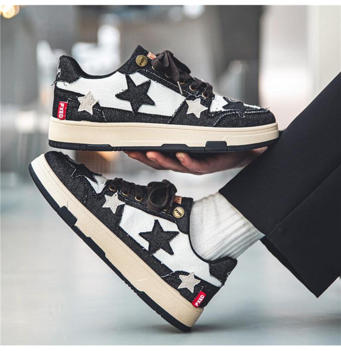 Ajoutez du style à votre garde-robe avec ces baskets décorées d'étoiles audacieuses. Parfaites pour un look décontracté et unique, elles offrent un confort exceptionnel et un design accrocheur qui fera tourner les têtes. Idéales pour un usage quotidien ou des occasions spéciales, elles complètent parfaitement tout type de tenue.