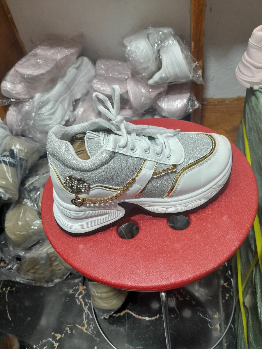 Découvrez ces baskets glamour pour femme, ornées de chaînes dorées, idéales pour un look tendance. Confortables et stylées, elles sont parfaites pour toutes occasions décontractées.
