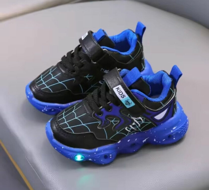 Ces baskets lumineuses pour enfants offrent un style unique avec un motif de toile d'araignée et une semelle LED colorée. Confortables et amusantes, elles sont parfaites pour les petites aventures nocturnes.