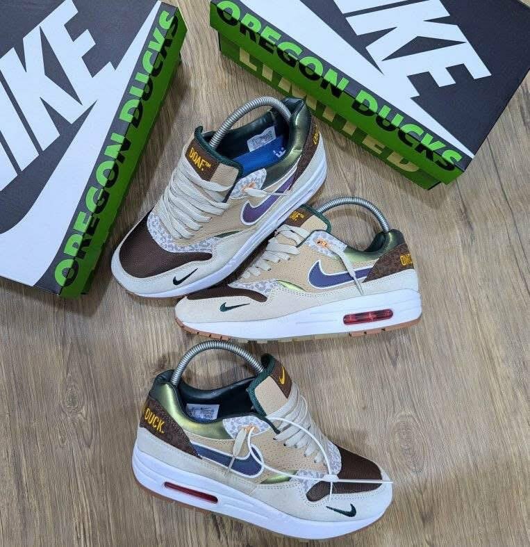 Découvrez les baskets Nike Oregon Ducks, un choix parfait pour les amateurs de sneakers uniques et sportifs. Dotées d'un design captivant avec des touches de vert et de marron, elles offrent confort et style au quotidien. Parfaites pour le sport ou les sorties décontractées, ces chaussures sont un must-have pour tout fan de sneakers. Ne manquez pas cette édition limitée!