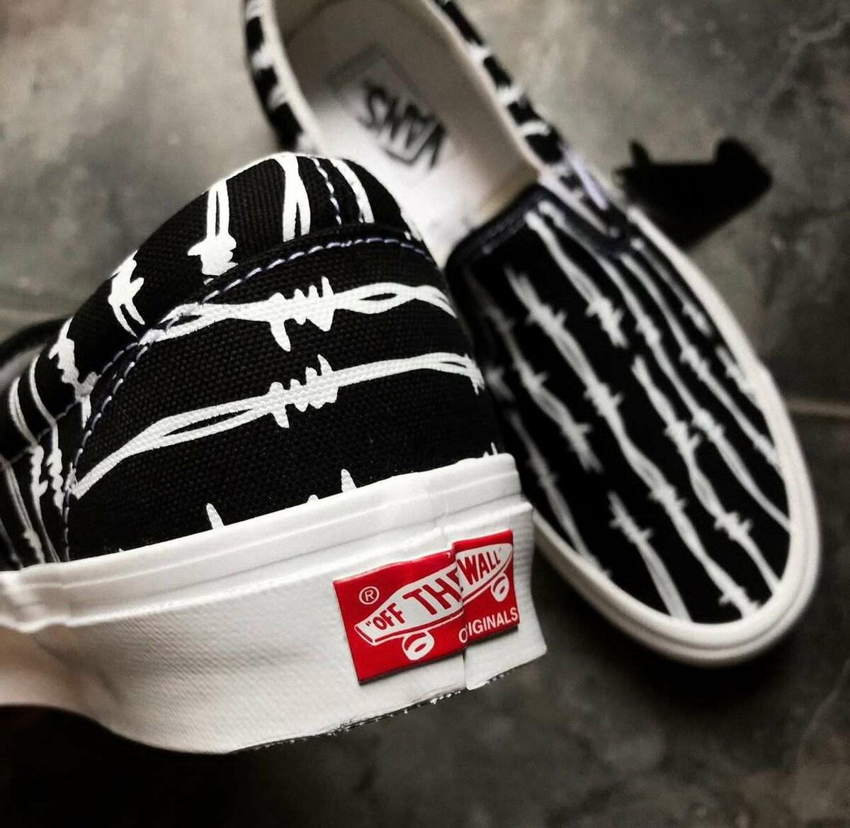 Découvrez notre paire de baskets Slip-On avec un design audacieux de barbelé noir et blanc, parfait pour un look urbain moderne. Fabriquées avec des matériaux de haute qualité pour un confort exceptionnel, elles sont idéales pour un usage quotidien. Ces chaussures, reconnues pour leur style iconique et leur facilité à enfiler, sont le choix parfait pour ceux qui recherchent à la fois style et confort. Un incontournable pour toute collection de mode urbaine.