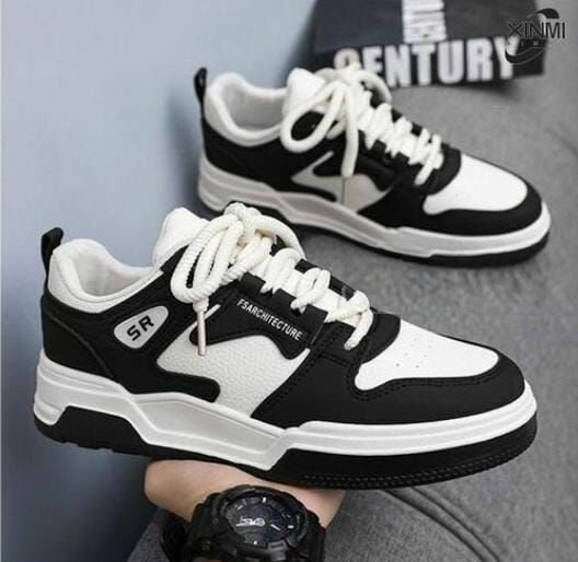 Sneakers en cuir noir et blanc