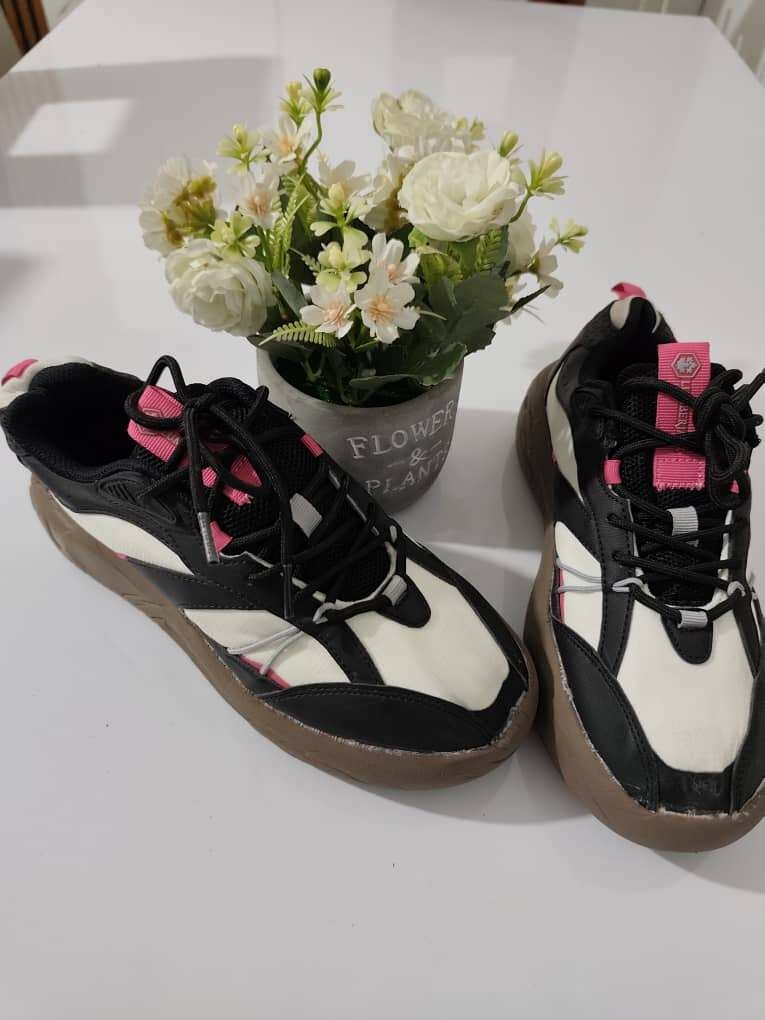Découvrez ces baskets à la mode, parfaites pour toutes vos activités. Avec un design unique noir et blanc rehaussé d'accents roses, elles sont idéales pour un look sportif et chic. Fabriquées avec des matériaux de haute qualité, elles offrent confort et durabilité. Que ce soit pour courir, marcher ou simplement pour le style, ces baskets répondront à vos besoins. Ne manquez pas ce choix incontournable pour votre garde-robe!