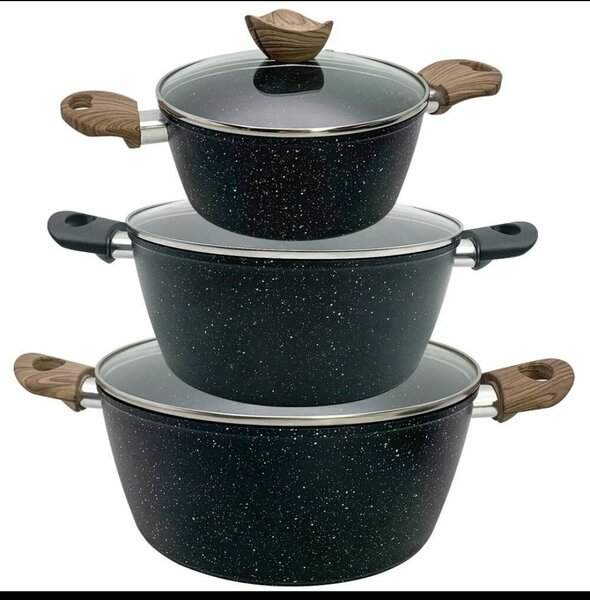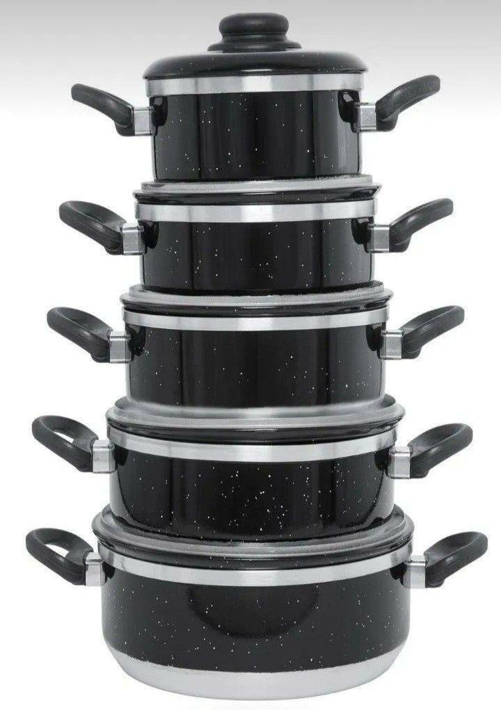 Découvrez cette batterie de cuisine élégante en noir tacheté, parfaite pour toutes vos aventures culinaires. Idéale pour une utilisation quotidienne, elle assure une excellente distribution de la chaleur. Robuste et pratique, elle vous accompagne du petit déjeuner aux dîners raffinés.