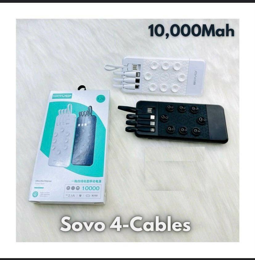Chargez vos appareils où que vous soyez avec la batterie externe Sovo 10000mAh. Dotée de 4 câbles intégrés, elle est pratique et efficace pour divers appareils. Idéale pour les voyages et les déplacements quotidiens.