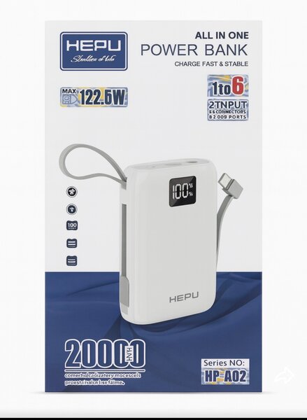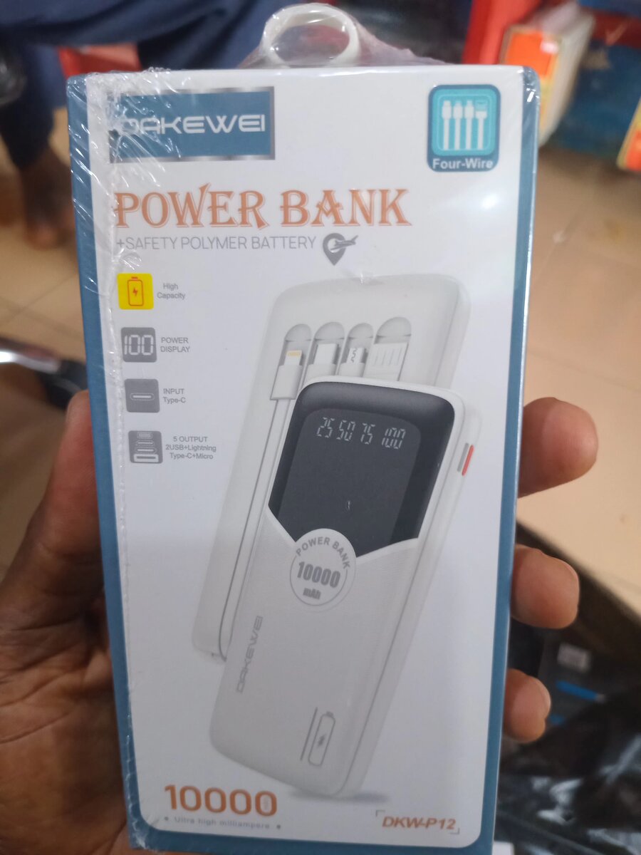 Power bank avec affichage LED et câbles intégrés pour un chargement rapide. Parfait pour recharger vos appareils lors de vos déplacements.