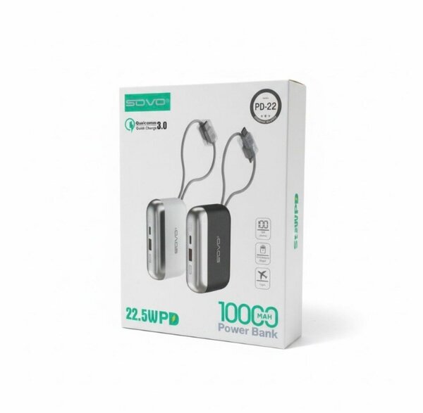 Batterie externe 10000mAh avec charge rapide 22.5W. Compacte et idéale pour les voyages, elle recharge vos appareils en un clin d'œil grâce à la technologie Quick Charge 3.0. Choix parfait pour rester connecté partout.