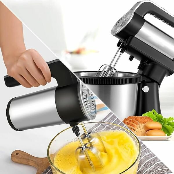 Batteur Electrique 2 en 1 avec 4L Bol Rotatif, Fouet Electrique et Batteur sur Socle avec 5 Vitesses, Pétrisseurs avec 2 Fouets et 2 Crochets