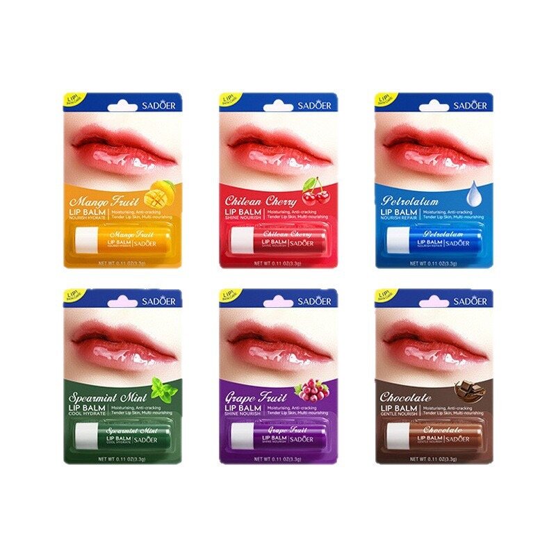 Transformez vos lèvres avec le baume à lèvres fruité Sadöer! Enrichi en ingrédients nourrissants, il hydrate et adoucit pour des lèvres irrésistiblement douces. Disponible en plusieurs saveurs délicieuses comme le cerise chilienne et le raisin. Idéal pour un soin quotidien.