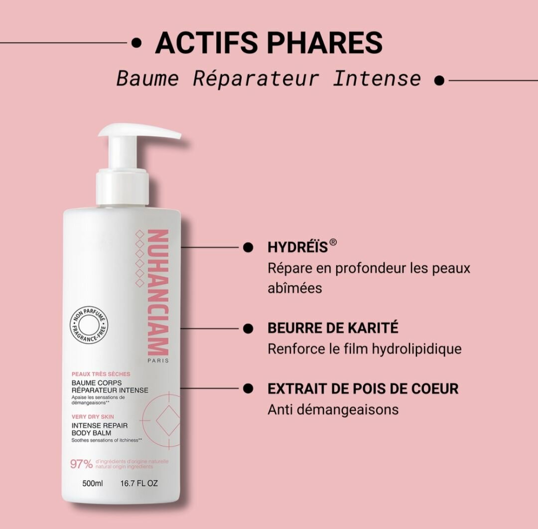 Baume intensément réparateur pour les peaux abîmées. Hydrate en profondeur, renforce le film hydrolipidique et apaise les démangeaisons. 97% d'ingrédients naturels.