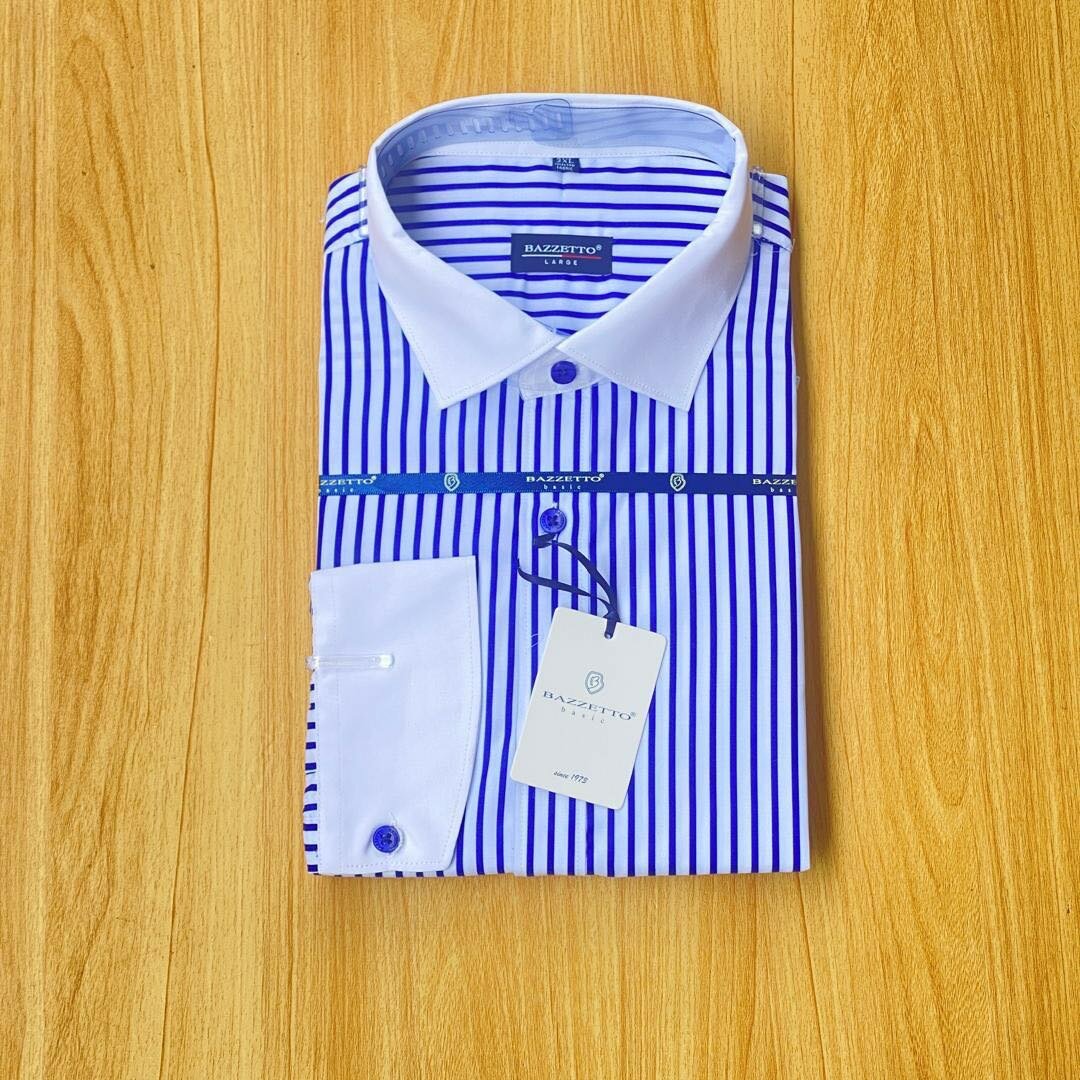 BAZZETTO Shirts available in sizes. 100% Cotton Shirts for all Official Occasions. Color: Blue and White Size: Medium to 3XL