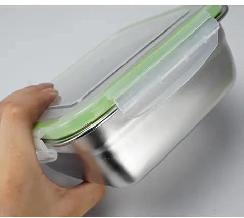 Bento en acide inoxydable Passe au micro onde, au réfrigérateur et au congélateur Antifute couvercle en plastique