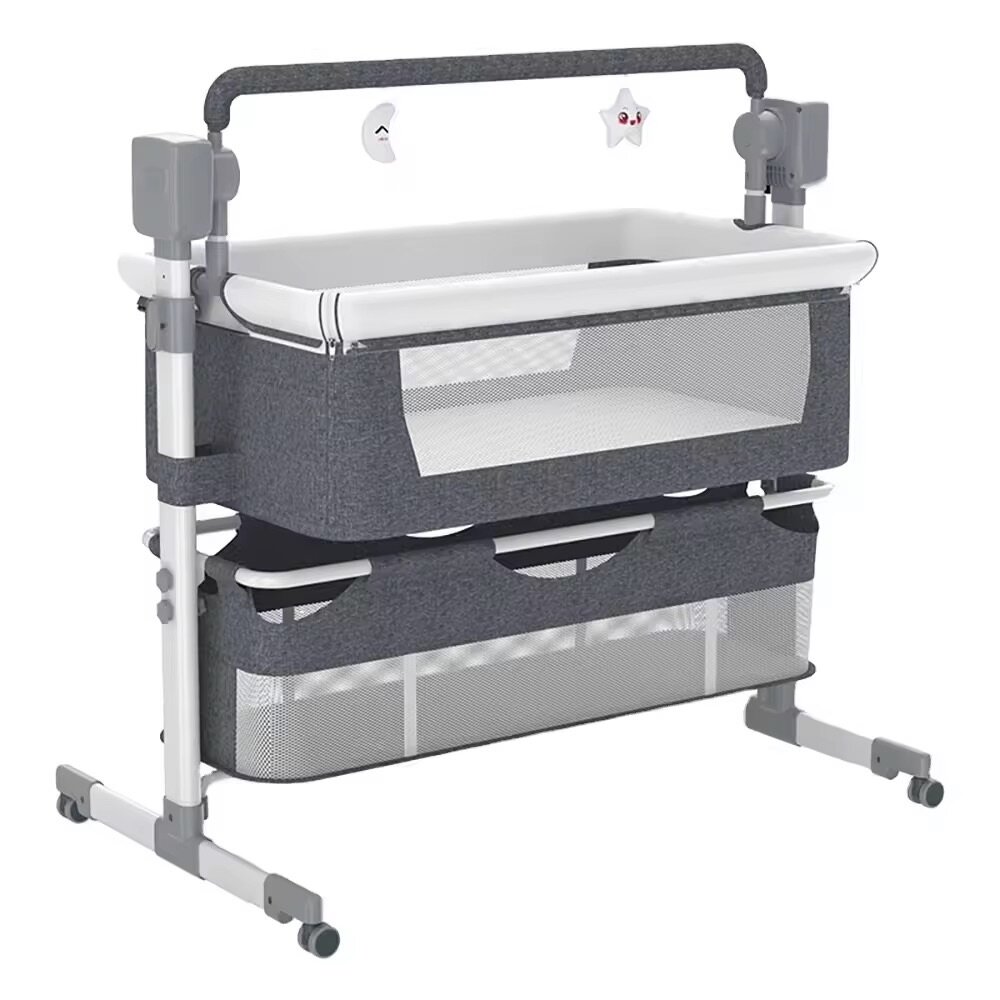 Berceau bébé électrique avec réglage en hauteur et vibration apaisante. Parfait pour la chambre de bébé, il dispose d'une télécommande, de jouets suspendus et de rangements pratiques. Offrez à votre enfant confort et sécurité pour un sommeil paisible.