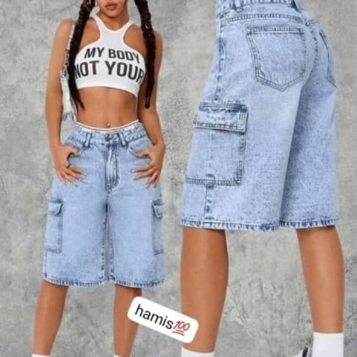 Optez pour ces bermudas en jean décontractés, parfaits pour un look tendance et confortable. Avec leurs poches cargo pratiques, ils sont idéaux pour vos sorties estivales ou vos moments de détente en ville. Faits de denim de haute qualité, ils garantissent durabilité et style intemporel. Combinez-les avec un crop top pour une tenue casual chic !