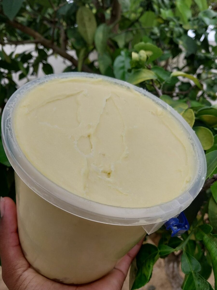 Le très bon Beurre de Karité de Korhogo, il est sans mélange ni mauvaise odeur, et il s'étale très bien sur la peau.