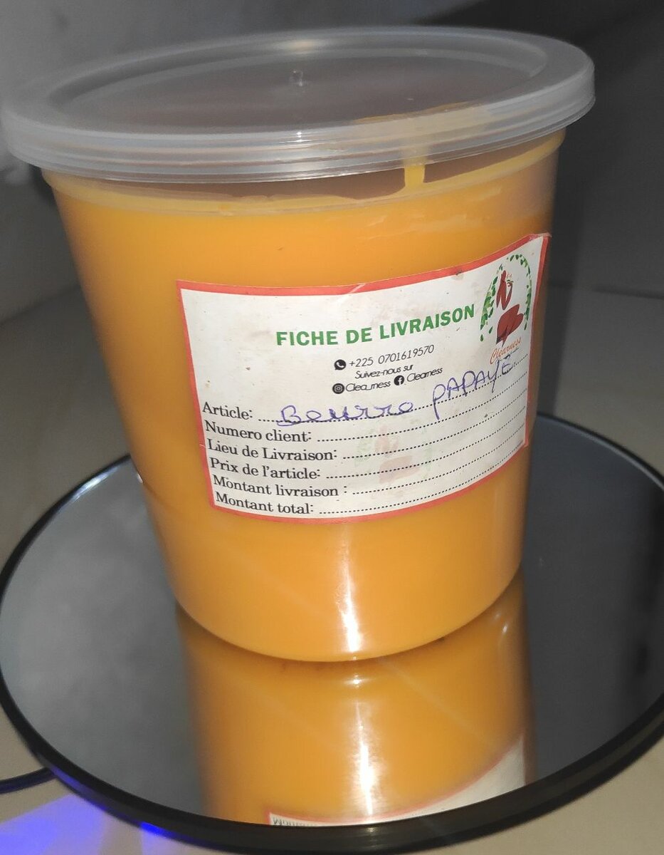 Le beurre de papaye est bénéfique pour la peau et les cheveux grâce à ses propriétés hydratantes, exfoliantes douces et revitalisantes. Il nourrit la peau sèche, illumine le teint, réduit les imperfections, et assouplit les cheveux, favorisant leur douceur et leur brillance. Il peut être utilisé pour la peau,en massage quotidien,