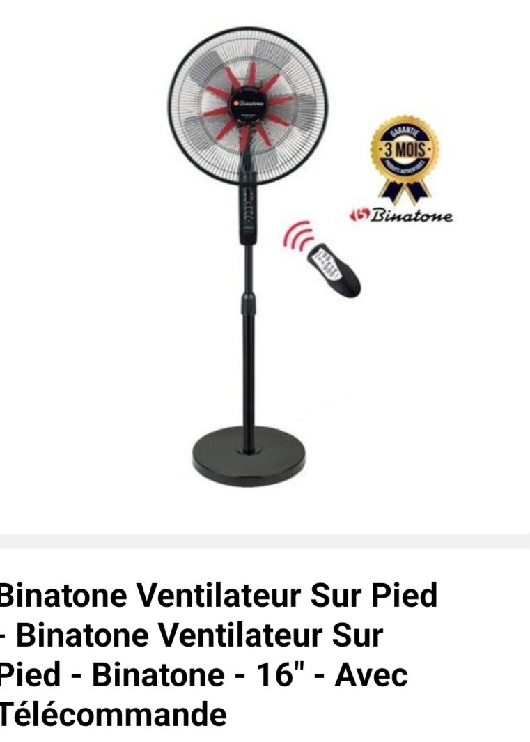 Profitez d'une fraîcheur optimale avec le ventilateur sur pied Binatone. Équipé d'une télécommande et d'un diamètre de 16 pouces, il est idéal pour rafraîchir votre maison ou bureau. Design élégant et facile à utiliser.