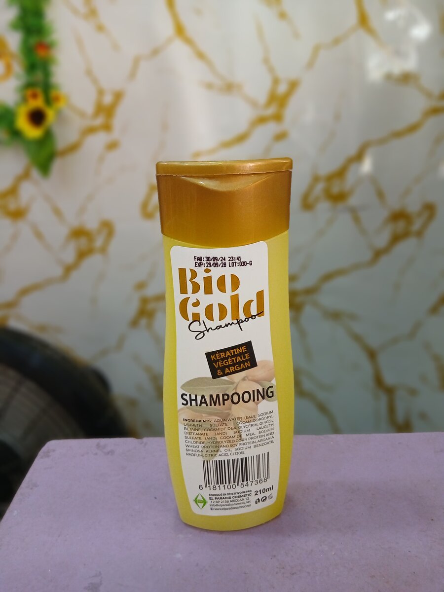 Découvrez le Shampooing Bio Gold enrichi en kératine végétale et huile d'argan, parfait pour des cheveux doux et brillants. Il répare et protège vos cheveux en profondeur.