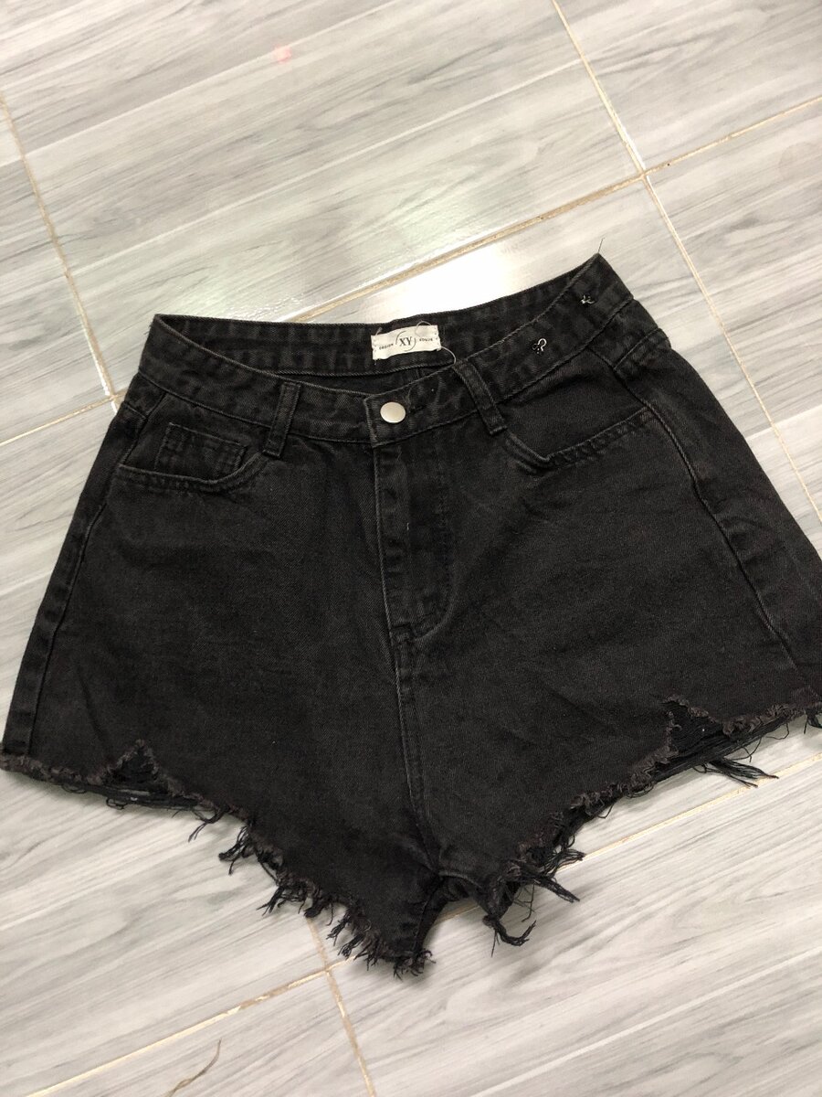 Upgrade your wardrobe with these chic black denim high-waist shorts. Perfect for casual outings or paired with a stylish top for an evening look. Featuring a trendy frayed hem, they are comfortable and versatile, making them an ideal choice for any fashion-forward individual.