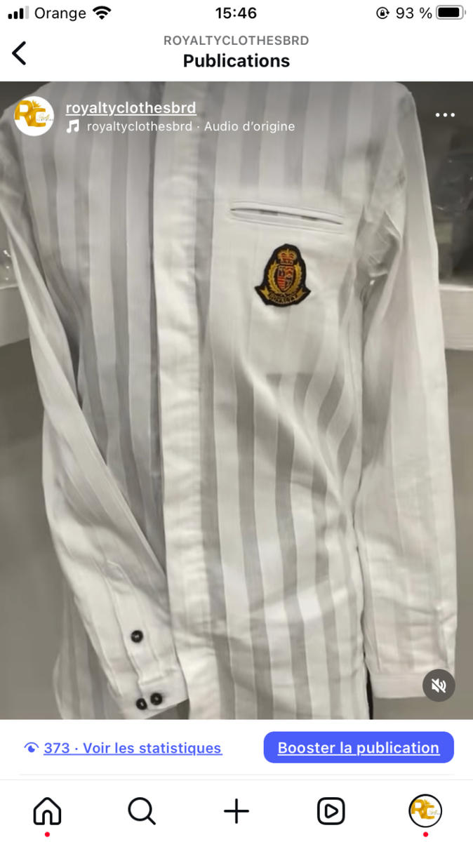 Chemise blanche col rond avec écusson doré Chic et luxueux.