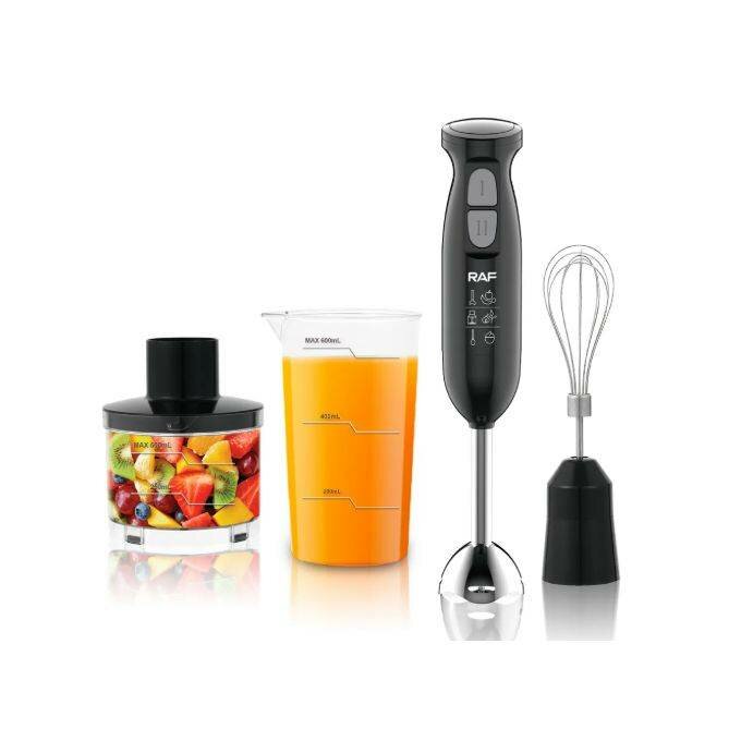 Blender à main puissant 800W, idéal pour smoothies, purées et soupes. Accessoires inclus : fouet et hachoir. Conception ergonomique, facile à nettoyer.