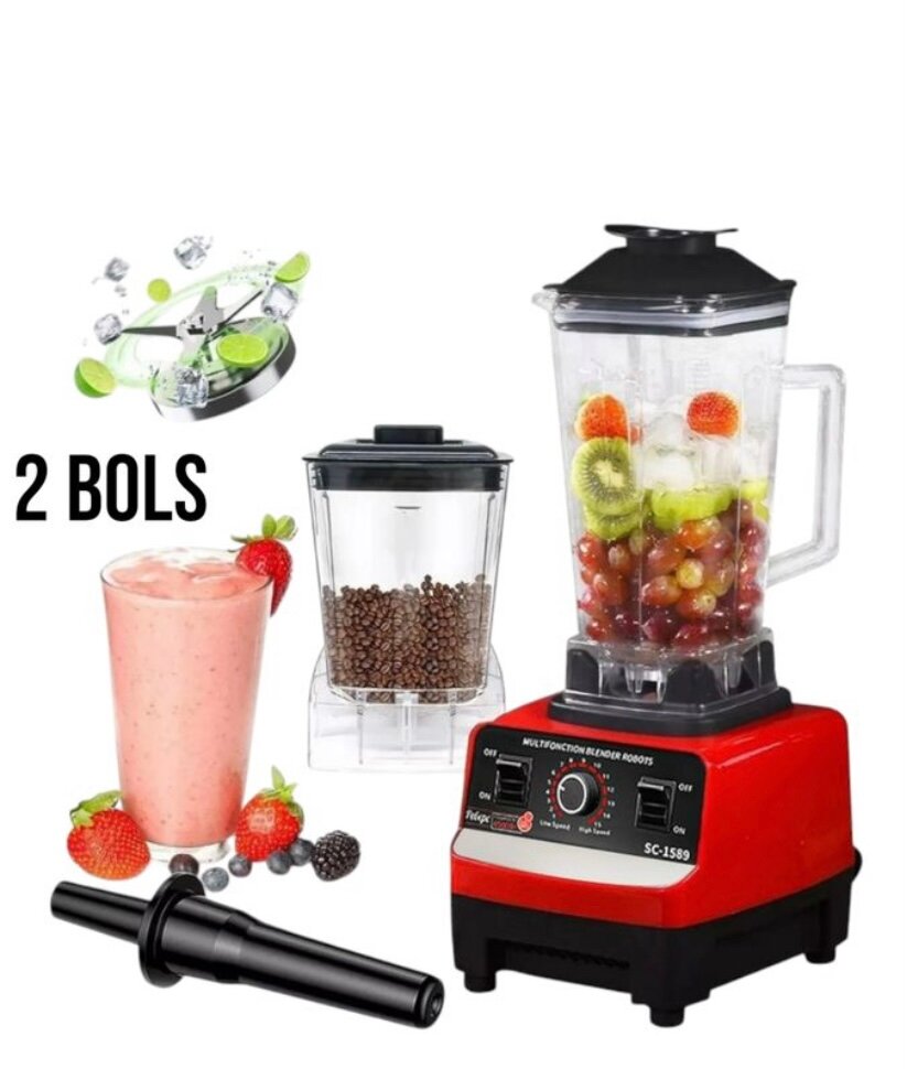 Préparez vos smoothies, soupes chaudes, desserts glacés et sauces avec ce blender multifonction puissant équipé de 2 bols. Idéal pour la cuisine quotidienne et les besoins de la famille.