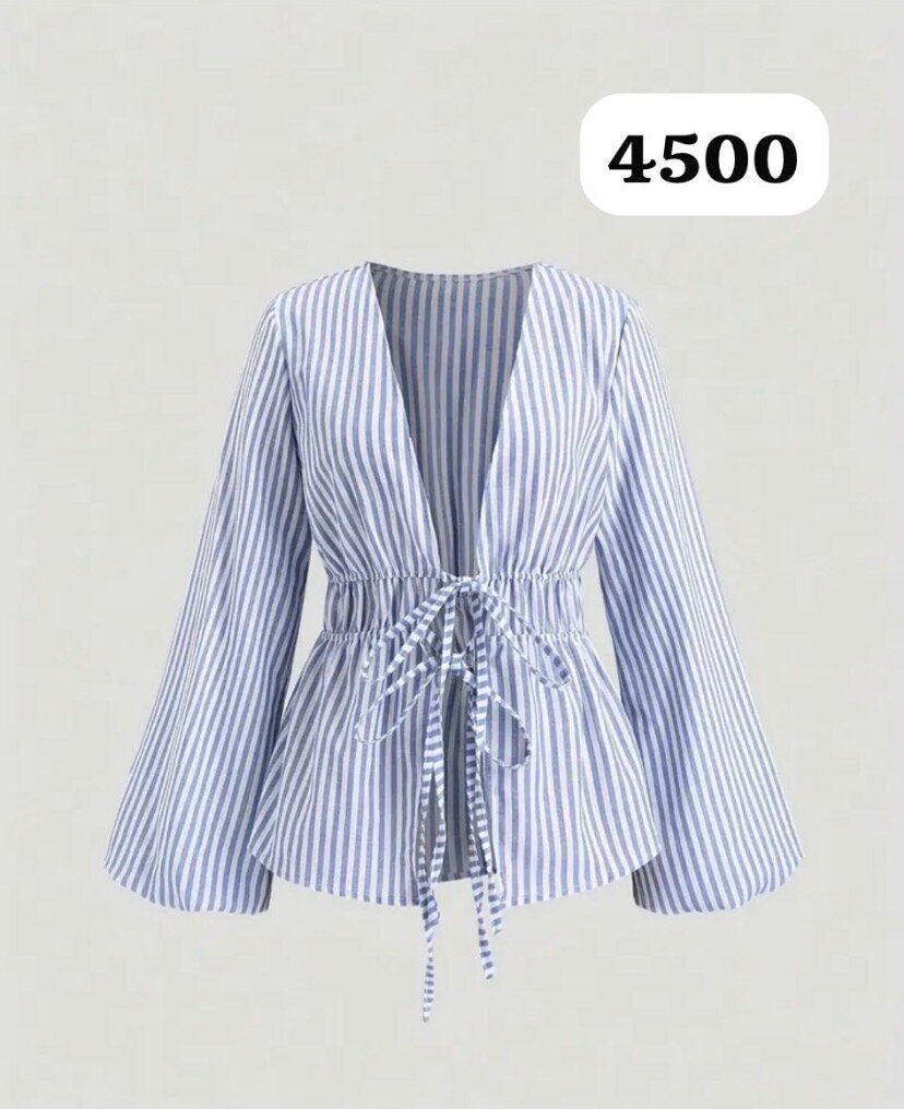 Blouse légère à rayures pour femme, parfaite pour un look chic et décontracté. Confectionnée en tissu doux avec une taille ajustable pour un confort optimal. Idéale pour le bureau ou les sorties.