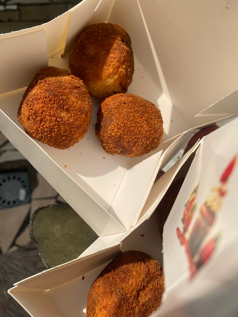 Trois boules croustillantes à l'extérieur et moelleuses à l'intérieur. Avec fromage, et viande au choix (saucisson, viande hachée, poulet, thon, etc.)
