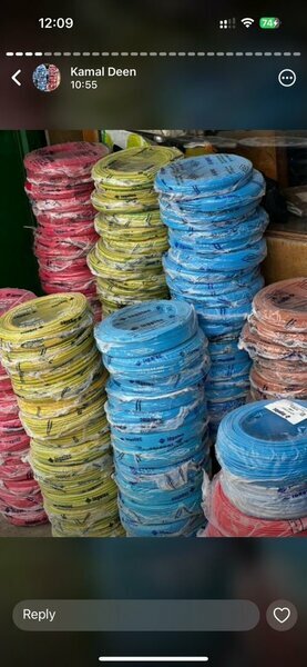 Bobines de câbles électriques colorés pour installation ou réparation. Plusieurs couleurs disponibles (jaune, bleu, rouge). Produits neufs adaptés au bâtiment, magasin ou chantier.