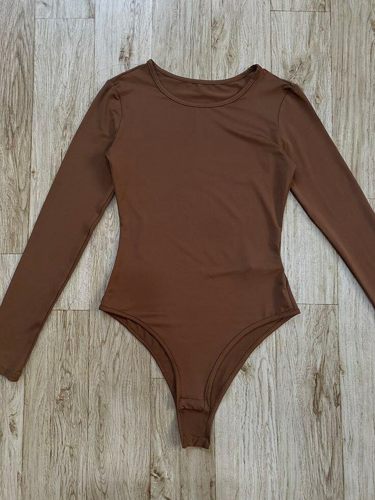 Découvrez ce body à manches longues élégant en marron, idéal pour toutes les occasions. Fabriqué avec un tissu doux et extensible, il offre un confort optimal et un ajustement parfait. Parfait pour être porté seul ou superposé, c'est un ajout polyvalent à toute garde-robe.