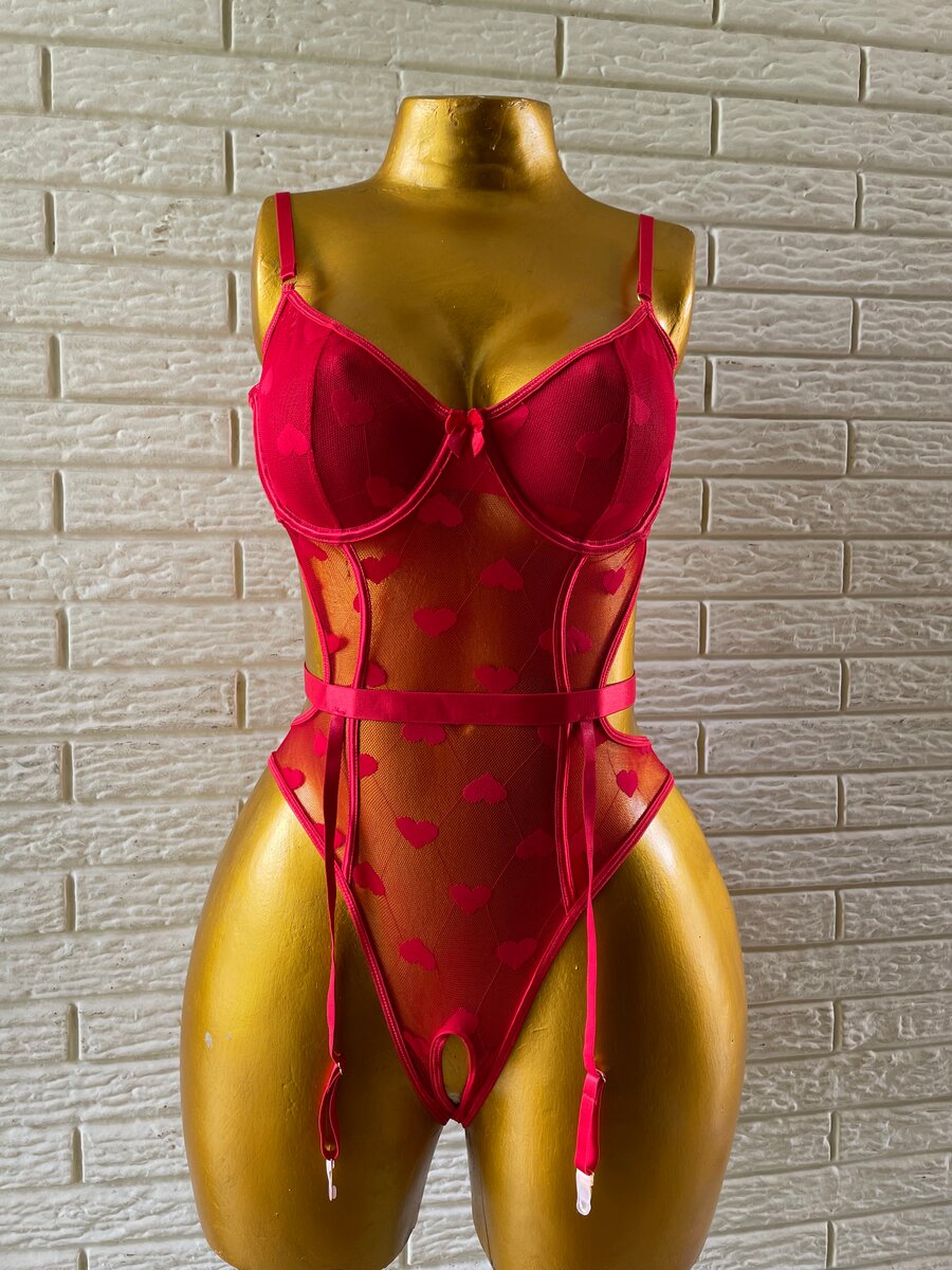 Ce body rouge en dentelle est l'ajout parfait à votre collection de lingerie. Conçu pour séduire, ce modèle est orné de motifs en cœur pour une touche romantique. Grâce à sa coupe ajustée et à ses bretelles réglables, il s'adapte parfaitement à votre silhouette, offrant à la fois confort et allure séduisante. Idéal pour des occasions spéciales ou pour se sentir irrésistible au quotidien.