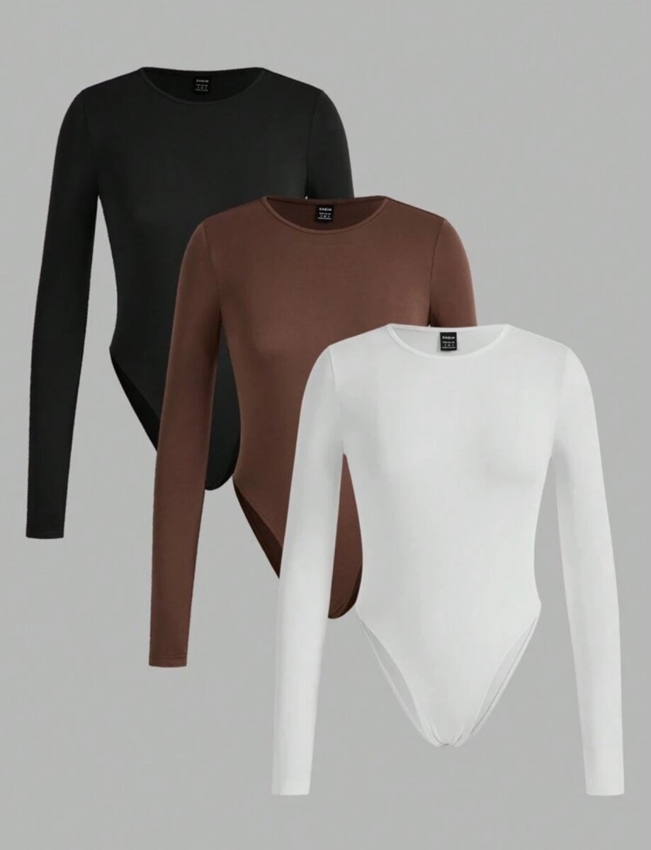 bodysuits manches longues pour femmes, élégants et confortables, parfaits pour toute occasion. Fait de matériaux doux garantissant une aisance toute la journée. Idéal pour superposer ou porter seul. Disponible en noir, blanc, gris et marron.