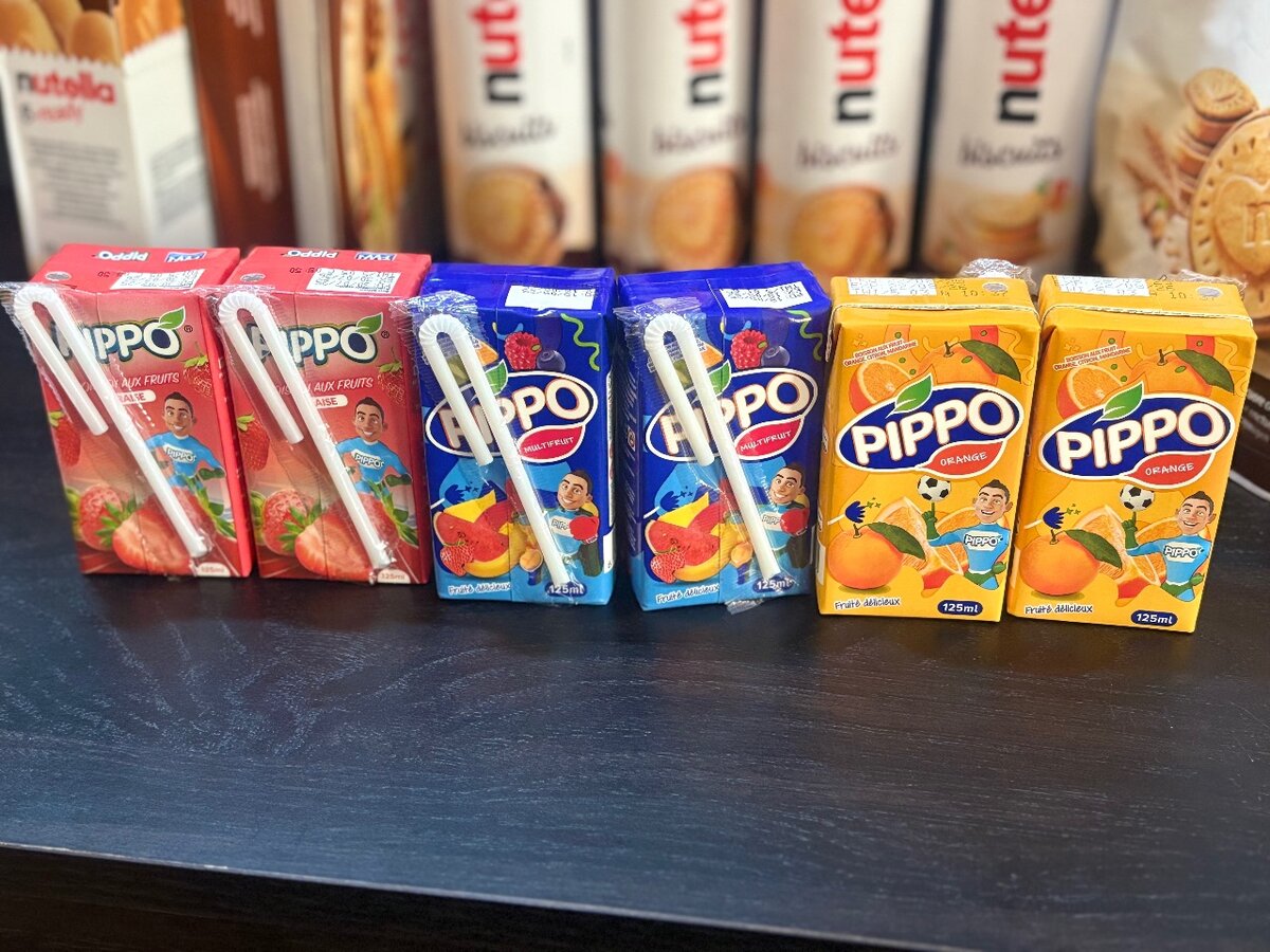 Découvrez les délicieux jus de fruits Pippo, parfaits pour toute la famille. Disponible en plusieurs saveurs : fraise, tropical et orange. Emportez-les partout grâce à leur format pratique avec paille intégrée.