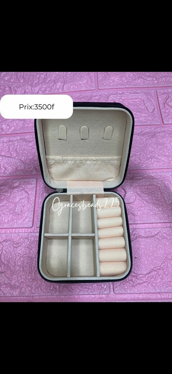 Cette boîte à bijoux compacte et élégante est parfaite pour organiser vos bijoux en déplacement. Avec des compartiments pratiques pour les bagues, colliers et bracelets, elle protège vos précieux accessoires. Parfait pour voyager ou simplement garder vos bijoux bien rangés à la maison.