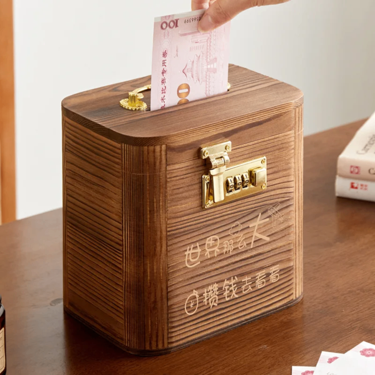 Organisez vos économies avec élégance grâce à cette boîte à épargne en bois. Fabriquée à partir de matériaux durables, elle est équipée d'une serrure à combinaison pour une sécurité optimale. Parfaite pour stocker vos billets et pièces, cette boîte peut également être un superbe ajout décoratif à votre intérieur. Idéale pour ceux qui souhaitent combiner utilité et design moderne.