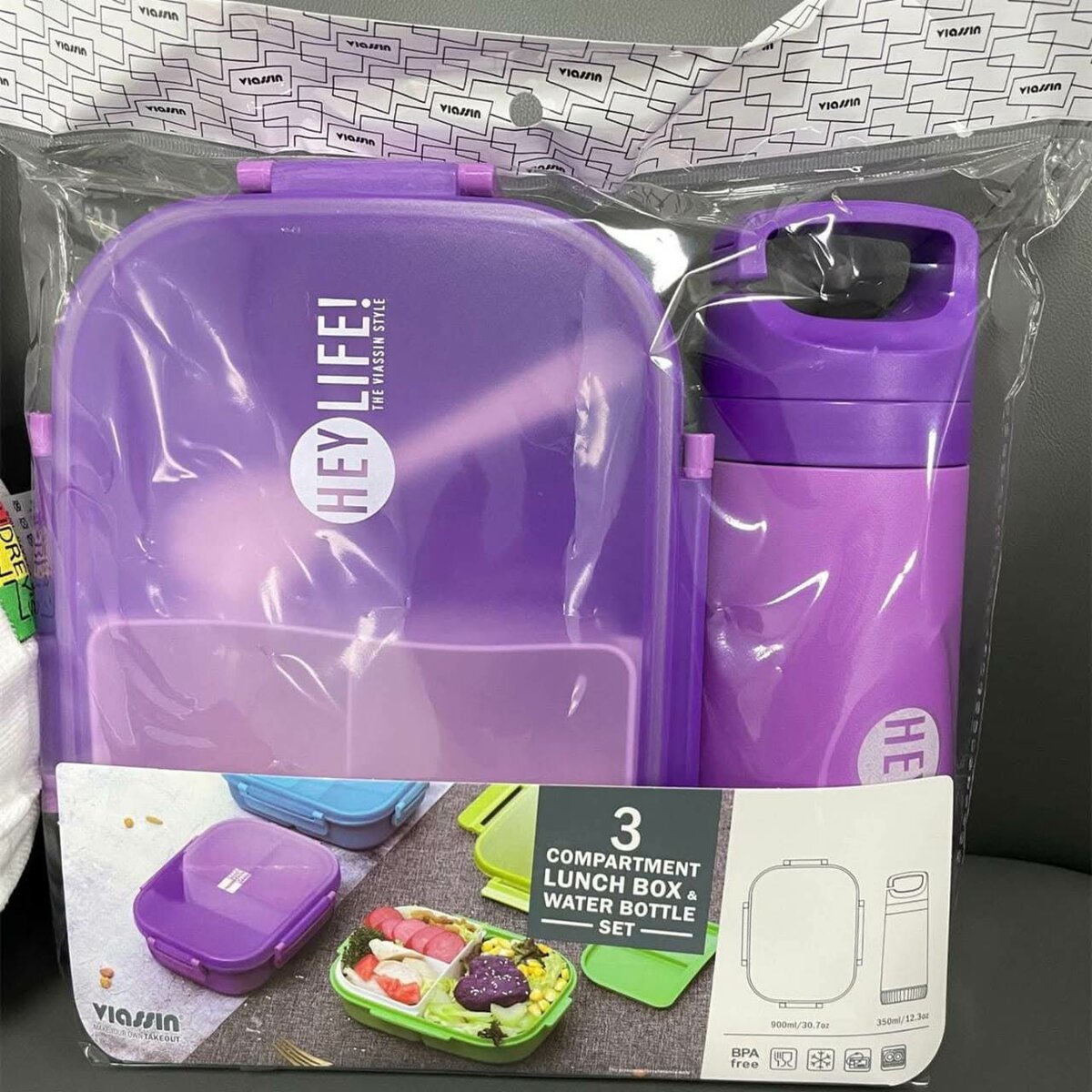 Profitez de repas équilibrés où que vous soyez avec cette boîte à lunch violette à 3 compartiments et sa bouteille assortie. Conçue en matériel durable et sans BPA, elle est parfaite pour les enfants et les adultes. Idéale pour l'école, le travail ou les sorties.