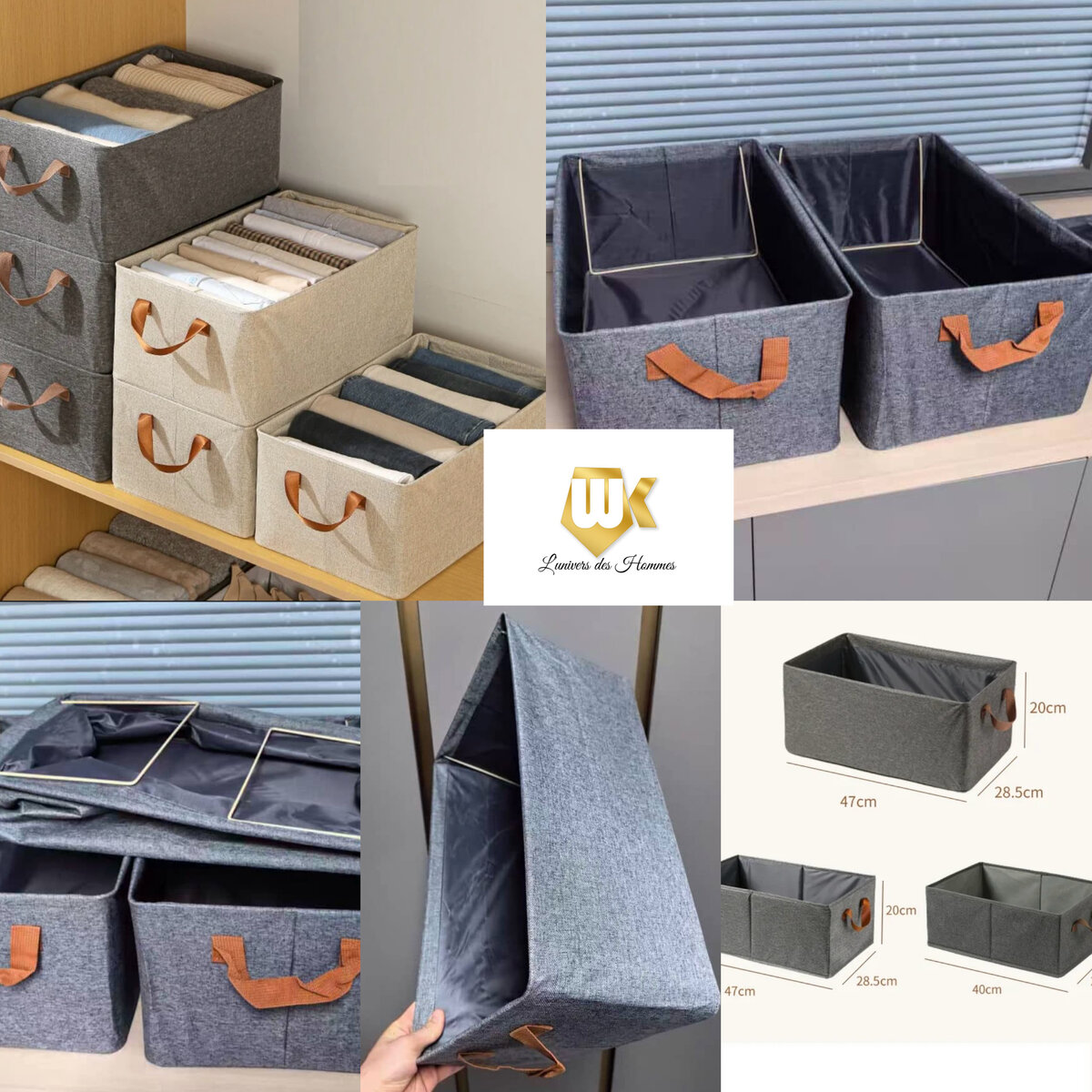 Optimisez votre espace avec ces élégantes boîtes de rangement en tissu. Dotées de poignées robustes, elles sont idéales pour organiser vêtements, jouets ou accessoires. Leur design sobre s'intègre parfaitement dans tout intérieur. Dimensions : 47x28,5x20 cm. Parfaites pour la maison moderne !