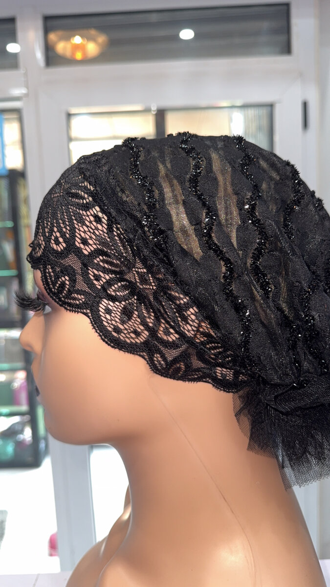 Ajoutez une touche de sophistication avec ce bonnet en dentelle noire, idéal pour des soirées glamour ou des événements spéciaux. Fabriqué avec une dentelle délicate, ce couvre-chef est non seulement chic mais aussi confortable à porter. Parfait pour celles qui cherchent à accentuer leur style avec élégance.