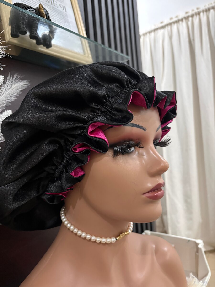 Protégez vos cheveux pendant la nuit avec ce bonnet de nuit en satin. Conçu pour les femmes, il est élégant et confortable. Disponible en différentes couleurs.