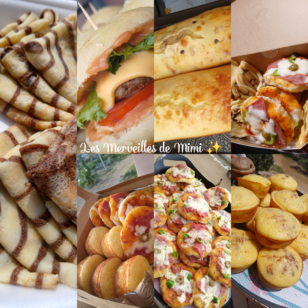 Grande boxe mélange sucre salé Contenu Boulette de pomme de terre , mini burguer ,croque monsieur, Gauffre mini pizza À partager entre amis ou en famille