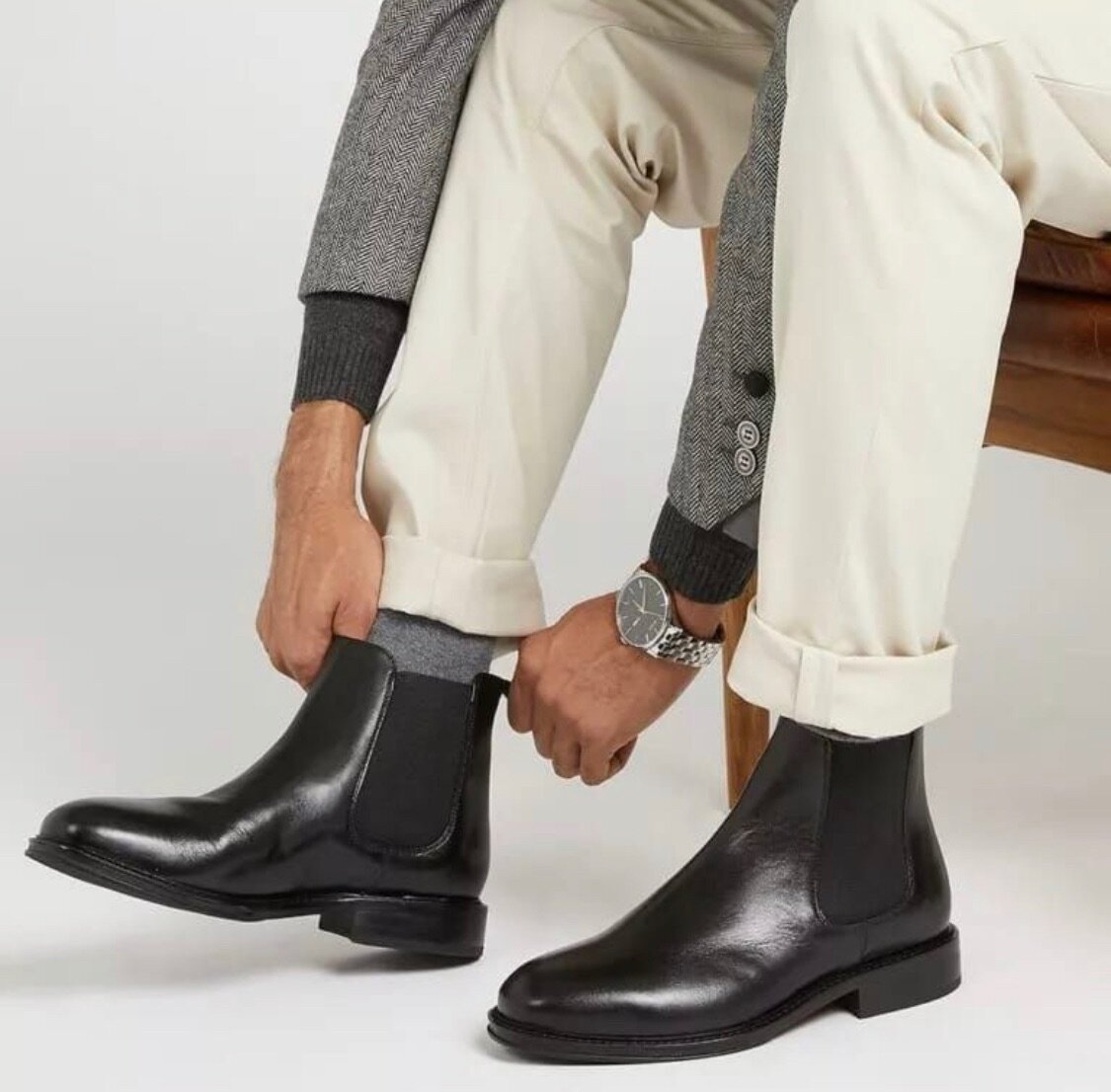 Ces bottes Chelsea en cuir noir offrent un style intemporel et raffiné. Confortables et polyvalentes, elles sont parfaites pour toutes les occasions, du bureau aux sorties le week-end. Fabriquées avec des matériaux de haute qualité, elles garantissent durabilité et élégance. Idéales pour l'homme moderne cherchant à allier confort et sophistication.