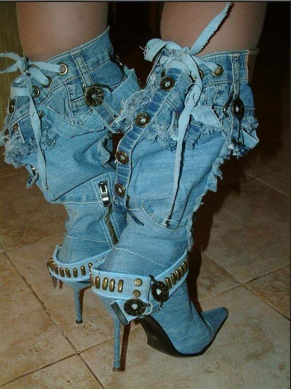 Découvrez ces bottes hautes uniques en denim recyclé . Parfaites pour un look audacieux, elles allient style urbain et confort. Leur design original et les détails de couture soulignent votre personnalité unique. Idéales pour les fashionistas en quête d'originalité.