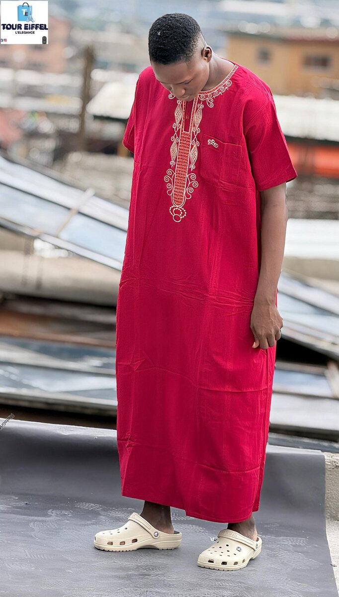 Découvrez notre élégant boubou africain en rouge vif, parfait pour une allure sophistiquée et confortable.