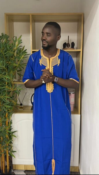 Chemise africaine marron pour homme, confectionnée avec des détails dorés. Clic,choisi. On te livre.