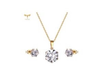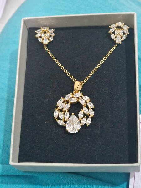 Sublime parure en or et zircon : collier et boucles pour sophistiquer votre style. Parfaite pour soirées et occasions spéciales.