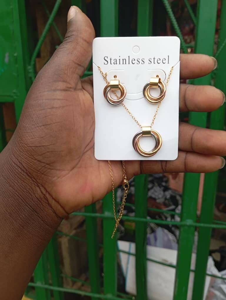 Collier et Boucles d'Oreilles en Acier Inoxydable